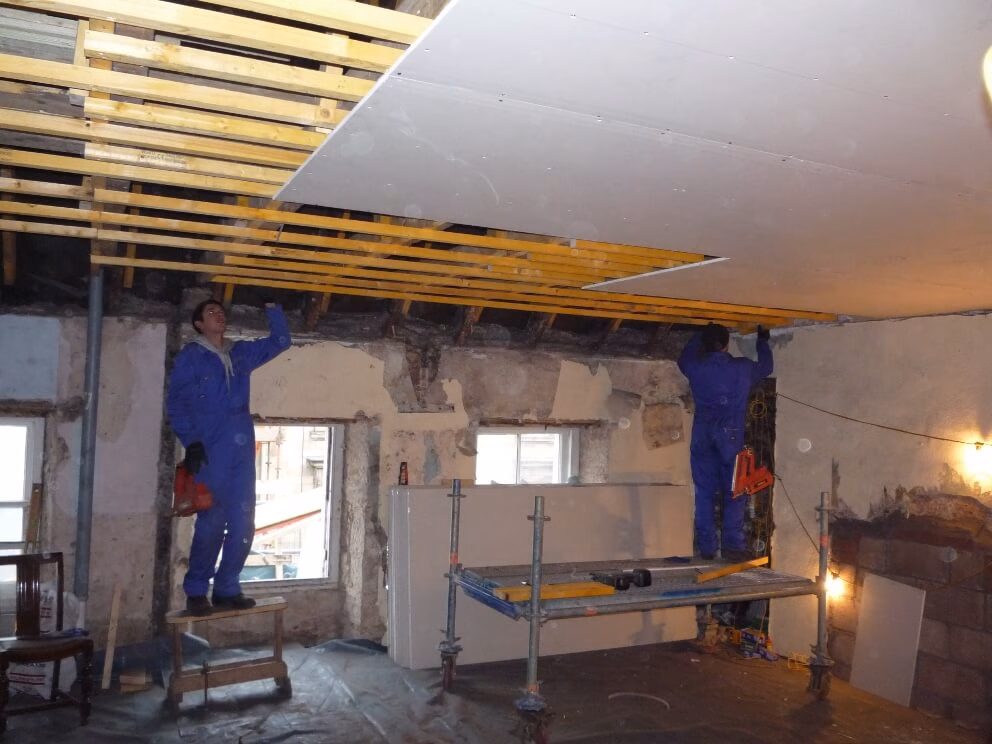 Los primeros se utilizan para reducir la altura de techos demasiado altos, permiten eliminar ese espacio de aspecto poco acogedor y frío. Estos techos de Pladur disminuyen la altura principal del techo, método muy utilizado en centros comerciales y vivienda de altura excesiva.